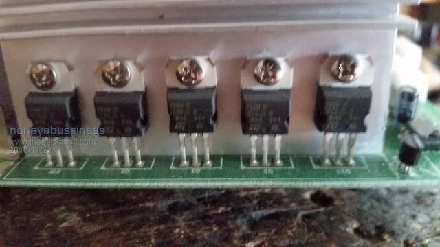 ![]() The 5 per bank ( 4 of obviously ) mosfets it driving... sorry for blurring, stupid phone camera quits sometimes . Markings are p80nf10... I think it works !! |