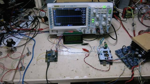 First, some answers: I asked Tinyt to accommodate 2 x IR21844 and one HIP4082 in the circuit and PCB. That way, either can be used on the same board. I have had some progress with nano2 code. So much so that I have a running prototype. It has fake AC volts, DC V, DC I and heatsink temp inputs which are driven by potentiometers. During testing I found a wrinkle. nano2 when booting pulls D7 down, low impedence. This is connected to nano1, D8 which is the on/off input. This means, during booting, nano2 will start the inverter, and nano2 code will think the inverter is OFF. What an awesome start to proceedings. So a change has been made, nano1 D8 pin will be: HOLD LOW = stop HOLD HIGH = run (the inverter) This now lets nano2 boot up without kicking the inverter into life unknowingly. I added a simple message displayed on the LCD on boot, for 2 seconds, to show it is booting and give me a cue to look for issues. I need to code some timeouts for the AC low level. Maybe later on tonight. No point in having AC output low level cut off active as soon as you start the inverter since the soft start will always trigger. And we won't get anywhere. I think a timeout of about 10 seconds after start will be suitable. I plan to permit either the old momentary push button or the current hold on/off to be used, switchable via #defines yet more video, do you find these worthwhile? I know I like to show the behavior of the code, to drive discussion of function and features. I have added support for toroid temperature, but since I have only Uno boards, I do not have access to ADC channel 7, where that temp sensor will be connected. It shows rubbish data now. Events in the video: start, DC V cut off, restart, heat sink temp increase, fan on (shown by star appearing), fan off (star disappears), increases to force cut off, restart and current increase to cut off. Values chosen are arbitrary. I do not care if they are wrong or poorly chosen. They are test values. Anybody can chose their own, and choose if any cut offs are active or not. mains sync was not active in this test. video code versions used: 2018-11-24_165611_nano2_1.ino.zip 2018-11-24_165638_nano_1_v3_sync_pid.ino.zip ![]() wronger than a phone book full of wrong phone numbers |