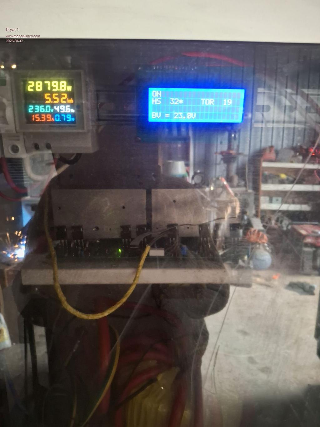 Ok seems I did talk nice enough ![]() ![]() Now of course the fillet weld ![]() Now Vbat 23.95 volts and with a 148 DC current draw 148 x 23.95 = 3544.6 The energy meter 2879.8 So 664.8 watts difference. Also the AC volt voltage dropped to 236 AC volts which is 5 volts under the VFB so much better regulation than with a non resistive load I do think Regards Bryan Edited 2026-04-12 11:33 by Bryan1 |