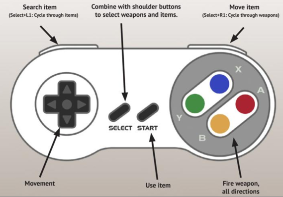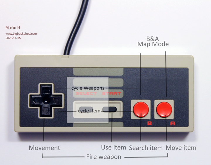 the goal would be the SNES Controller,which I dont have right now. ![]() source: PetsciiRobots user Manual if they work with 3.3V The way it is connected is identical to the NES, only the software has to evaluate 12 bits instead of 8, ![]() The controls on the GameMite or NES controller are already a compromise, as there are too few buttons, but they are still playable ![]() (Control via a single Atari joysticks is not provided because they simply have too few buttons) for control, you can always use the keyboard instead of the controllers Cursor Move A W S D Fire Z SEARCH M Move SPACE USE TAB cycle Map Mode F1 cycle through weapons F2 cycle through items Edited 2023-11-15 16:30 by Martin H. 'no comment |