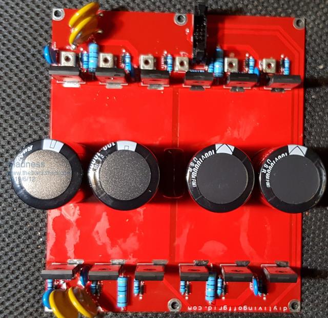 BTW the Mad control board logs the highest temp that the heatsink and torroid has seen. My heatsink fans have a target of 40c, their max has been 44c Torroid has a target of 50c, their max has been 54c. Now that has been in the summer Melb temps of 40c plus for a few days in a row, so that is actually pretty bloody good considering. Caps should be fine at 40c, but you can lower the setpoint if you want. But don't forget they probably wont actually be getting to 40c, that is the reading the sensor is picking up that is mounted to the heatsink close to the fets, the fins will be a lower temp normally, unless it's getting cained sh*tless. Cheers Caveman Mark Off grid eastern Melb |