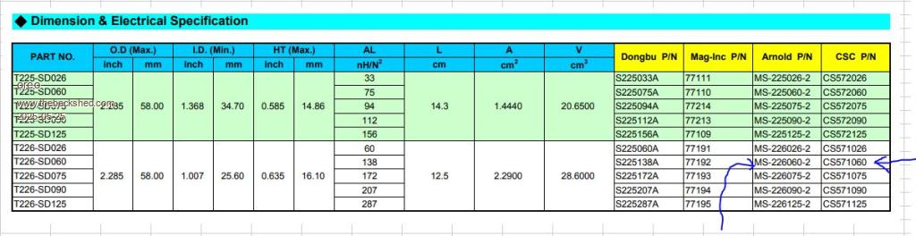 Typically the Micrometal calculations match my curve calculations but regardless we can use this as a guide.