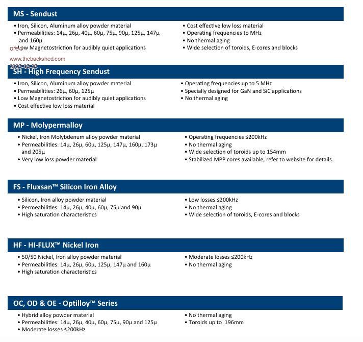 Now there are better core materials than Sendust.  Here is a list of the Micrometals (Arnold cores) materials.