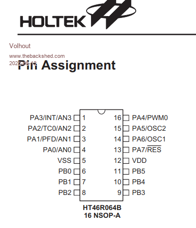 It is a MCU, most likely a Holtek one. In the early days of the Microchip PIC microcontrollers Holtek made similar devices (copied ?) that where quite a bit cheaper (at that time $0.22 for a MCU, where a similar Microchip PIC16F84 was 2 dollar). And they had (at that time) faster chips. So a real thread for Microchip. This particular chip could be have been used (1k OTP memory, 8 bit core). ![]() PicomiteVGA PETSCII ROBOTS |