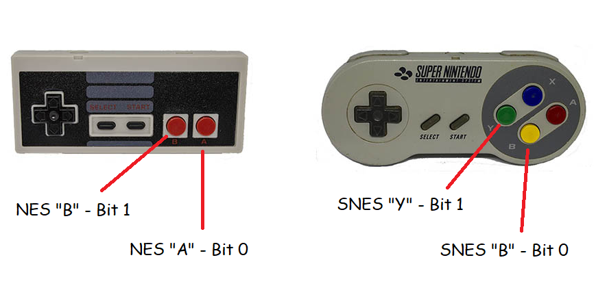 Thanks @Volhout, Does any of this explain why for the standard NES behaviour on those controllers it is necessary to pulse the clock after reading bit 7 and before pulsing the latch ? That's not as nuts/inconvenient as it might seem: ![]() Note that Y & B on the NES are positioned similarly to B & A on the NES controller. As a right-hander NES/A and SNES/B are comfortably the primary fire buttons and NES/B and SNES/Y the secondary fire buttons - I suspect the fact that they set (actually clear) the same bit is a piece of considered design by Nintendo. That's my feeling too, especially since with every controller I've tested you only need a 1 microsecond latch/clock pulse rather than the 12 microseconds that the real NES hardware apparently used. Nevertheless thank you for your efforts @Volhout, hopefully the controllers I sent are some recompense. As above I think it was a well considered decision and not even a nuisance for us except with regards play documentation. It's interesting that Nintendo didn't try and lock out 3rd party controllers (they went to considerable effort with regards 3rd party cartridges). Note also that the real NES and SNES have 7-pin connectors (different from each other) and not the DE-9/DB-9 the clones and the PicoGAME use. Sorting out the controller support, especially for driving game menus and entering names in the high-score table is actually proving more of a challenge than writing the rest of my (simple) game, but I think it is coming together and at the end of the day will be quite elegant - even if I do say so myself. Best wishes, Tom P.S. I have my inductors for the 2.0 PCB now, and half! of the acrylic enclosure from @bigmik has arrived, fingers crossed that the postie delivers the second half today so I can post some photos. Edited 2022-08-11 18:40 by thwill MMBasic for Linux, Game*Mite, CMM2 Welcome Tape, Creaky old text adventures |