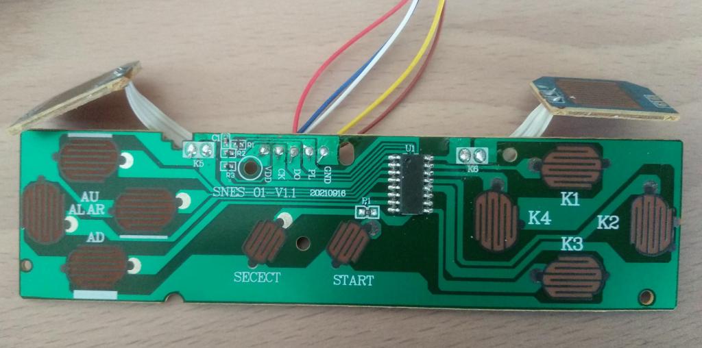 Hi @thwill, My AliExpress SNES controllers arrived today. I decided to do some testing before I swapped the cables. I can confirm that the ones I received have the same PCB and unmarked SMT chip as yours, and they don't match the previous 2 that I ordered about a year ago. Sigh.... First, I like the positive feel of the buttons and particularly the front bumper switches have a nice firm feel. Second, these things are S..L..O..W at least at 3.3V they are. I had to increase all the pulse duration and loop delays to get consistent results. This kinda makes sense if they are using a small 8 bit micro-controller as opposed to a shift register. It may actually work faster at 5V as it was probably designed for. Third, the "Select" button reports all zeros.(inverted to ones in software) It's pulling down the data output too low. I see there is a pull-up resistor on the Data Out and a resistor in series with the select button. This was also likely designed to work at 5V. Otherwise, the controllers seem to report all 12 bits correctly. I'd like to do some testing on these with a 5V power supply and check the timing with a O'Scope, but I would need to use a different test platform as the Pico pins aren't 5V tolerant. In summary, for use with the PicoGameVGA, I'm afraid these things are a BUST! -Carl |