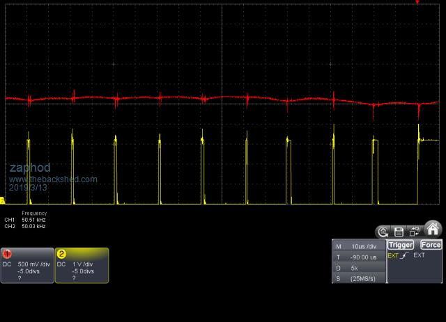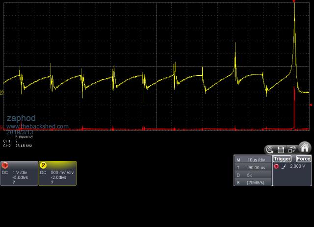 I also discovered my OWON VDS1022I scope self triggers every 5-30 seconds from some internal noise that is not visable on the trace at any timebase with probes shorted or removed so I cannot even leave that in single shot mode to capture any events, what a life!!