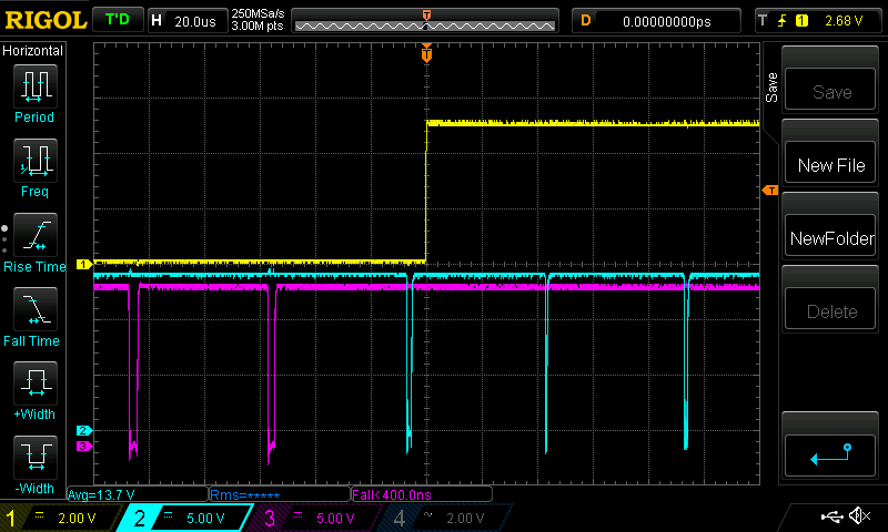 Thanks for your on-going efforts Peter - I will try later today. "it removes the initial too wide pulse at the start of each 1/2 wave" Is this really the beginning of a half wave? Should this really read - it removes the initial too wide pulse at the end of the previous 1/2 wave that appeared on the wrong output pin (that should have remained at zero) - just before the zero cross ? This is an innocent question but I am playing devils advocate to highlight the inner meaning - I might not be getting something. It appears the pulse is now skinnier but again - I am software challenged & make no bones about it - I would have expected the ports for pins 9 & 10 are only enabled after the corresponding zero cross has occurred. I am looking at the traces above - not ideal - the narrow pulse seems to now occur twice, once just before zero cross, once after at the beginning of the pulse train. This will probably have no detrimental affect overall - but for my interest how does a 70nS pulse occur when it should have been either zero or 12 pulses wide? BTW my hardware can drive the FETs from ~ 150-200nS pulses from the uC. Edited 2019-10-02 09:20 by wiseguy If at first you dont succeed, I suggest you avoid sky diving.... Cheers Mike |