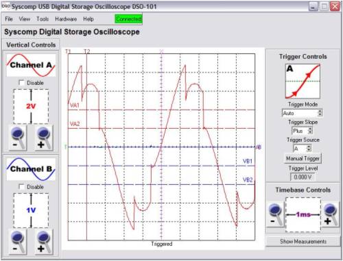 The waveform is just starting to be held by the battery load.