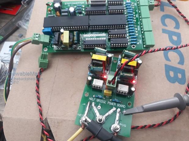 ![]() Almost finished the driver boards. Tony, if I fire the control board up connected to the driver boards I should see square wave signals from the gate pin on the driver board right? Cheers Caveman Mark Off grid eastern Melb |