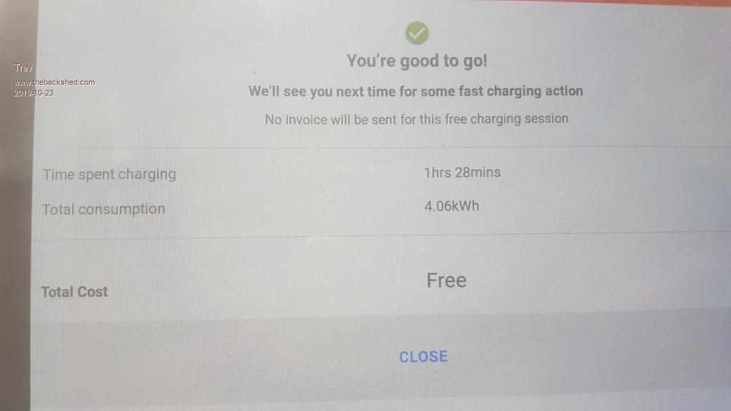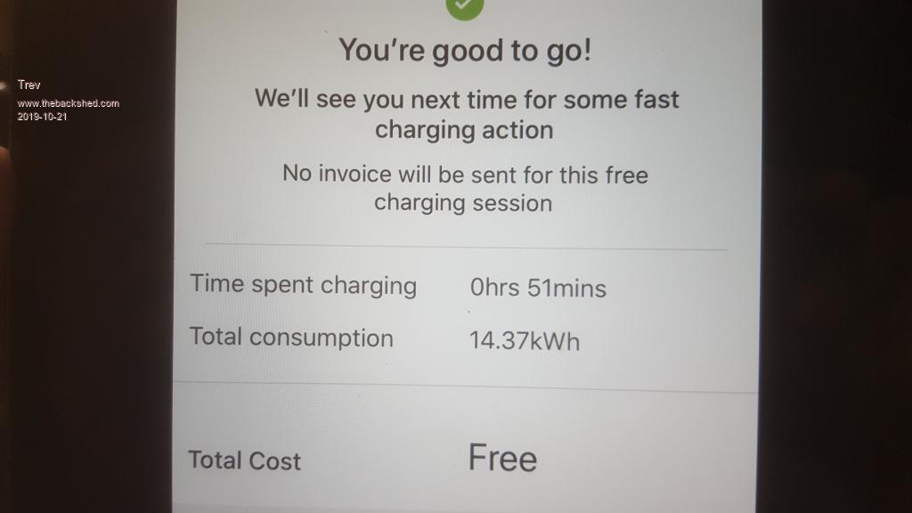 Well done Trev and Glen. I had driven up to Miriam Vale to start the trip to Sydney from there and get a realistic idea of charging times on the road. Alas the journey home from Sydney would have taken more time then I had available so abandoned the idea. Glen's battery would be around 25kwh? Would take a lot to beat that for the 'Glen Trophy' I reckon. Are you both driving back together? Might be a new fast charge station open by then half way between Brisbane and Cooroy.