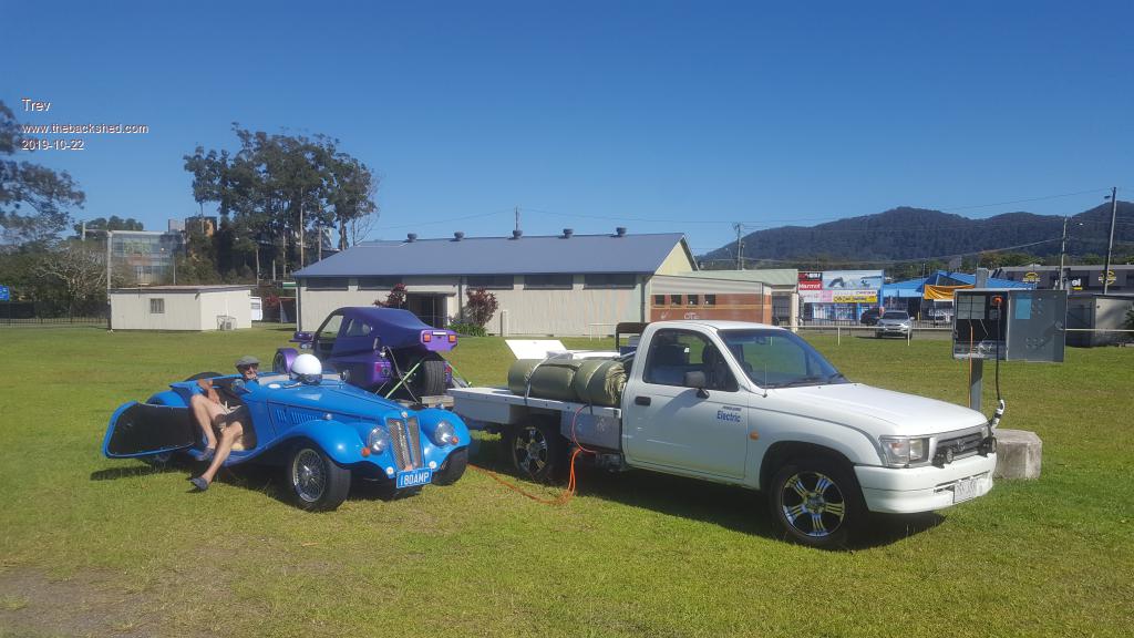 At the Gold Coast we looked at the possible charge points again for the day. At Mercato shopping centre, we looked at the charge plan more. We decided to skip Lismore and just go to Maclean. At dumping time (in the cane paddock), we found that Grafton showgrounds had 3ph and camping allowed. So the plan was then to try to make it all the way to Graften. We considered the power we had and figured it would be tight but possible. We had to do a double dump to MGEV and EV Hilux would use the rest from T-Rev. We made it with all 3 vehicles very empty.