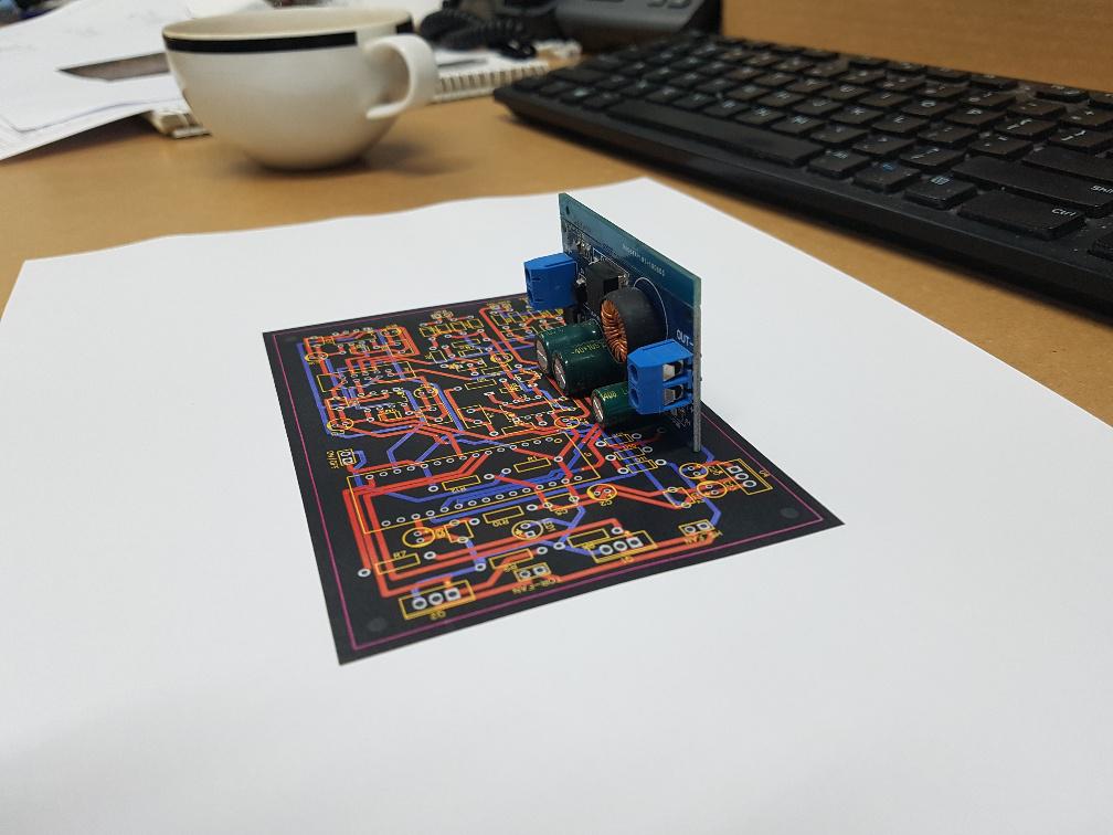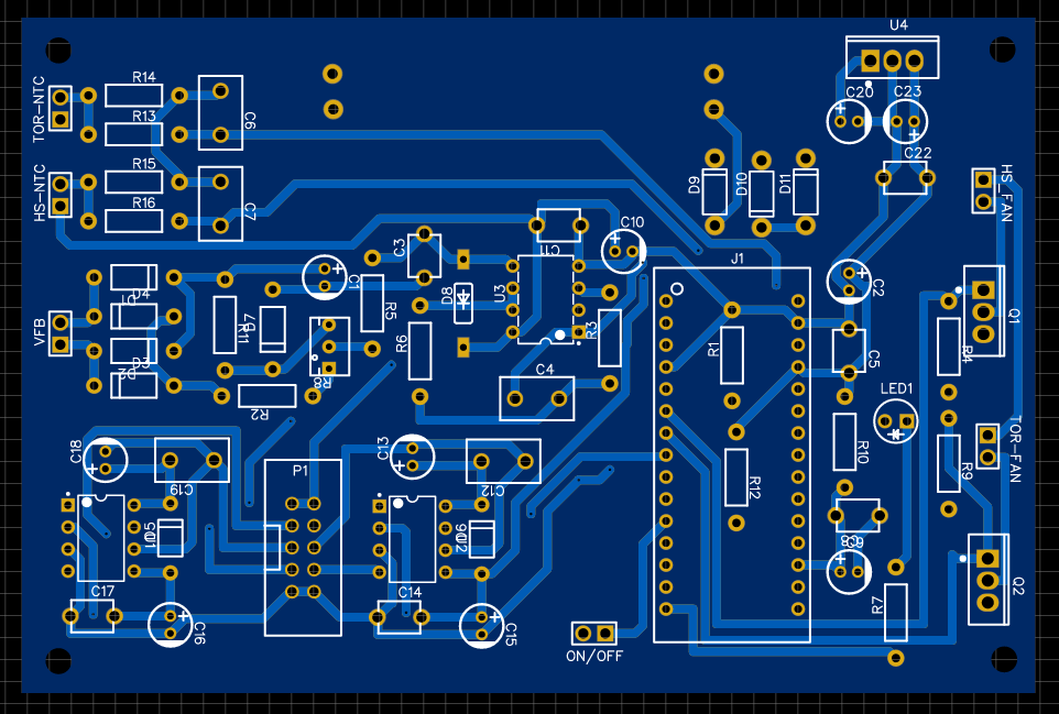 Hi Peter, good work! Just 2 remarks. Try to draw all horizontal lines with 1 color and do the vertical in the other color (top or bottom) that way you will always be able to cross your traces. I only started recently with that, important when things get bigger and messier... It's always good to avoid 90degree corners, I thought it was difficult to do sharp corners for the manufacturer. |