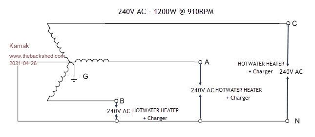 Kamak said  High RPM, high voltage turbine using a 10:1 ratio planetary gearbox @91 rpm prop speed = 910rpm rotor speed, 240V 3x 1phase AC outputs.