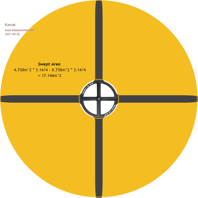 4730mm Dia 4 blade prop. High torque @ low rpm. This is just a guestimate at this point, but I think I'm in the ballpark.
