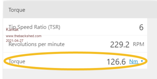 @ 91 RPM,  MD = 125.98 Nm (10x) Applied(required) by the Wind Tubine Blades