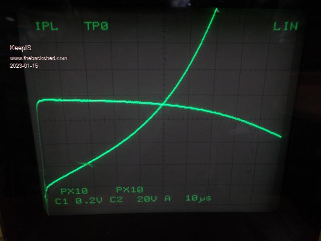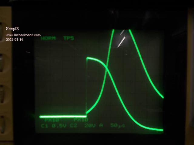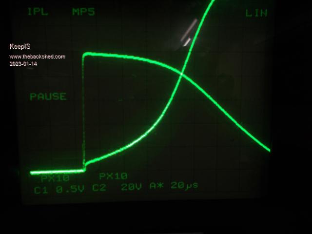 For anyone interested, these are photos of the Current through the Inductor and the voltage across the inductor, which shows the actual start point after the SCR fires. It's very hard to see the graticule on the CRO as the Camera sees the CRO switching between the channels but it's not visible to the eye. I noticed the voltage goes negative from the collapsing magnetic field. The Voltage is 100v, Current is 800A at the crossover point. Zoomed in. . NANO:Inverter V 8.2ks -Â Linux AvrDude GUI script V4.1 |