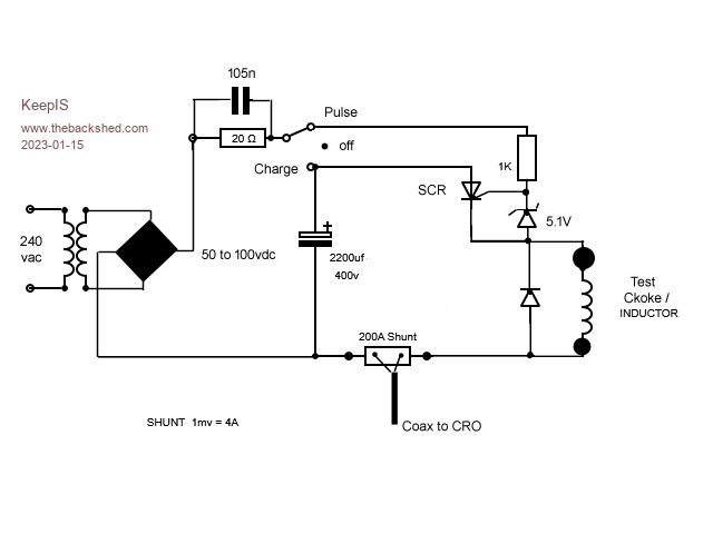 Thanks, I saw that great tester, but this method has been used for ever and was quick to make, the power supply does nothing except charge the CAP via a 20 ohm resistor. The cap can easily dump over 1000 Amperes into the inductor. The big Transformer on the test Jig is just one I had lying around, and it gave me almost 100v to the Cap - really only need around 50V. However, I found I needed a .47uf cap to stop noise on the SCR trigger from the supply, once I did that I got really clean signals. I was just about to post a few more shots when I noticed Solar Mike post a link and some info on the Blue toriod, thanks for that, really appreciated. I unwound the other 3 blue toriods I had and placed 6 turns through the 6 toriod stack. I measured 45uH and very high saturation, fitted it to the inverter and it's silent, the Toriod itself is silent and when switching on the big Variac, everything is as quite as a church mouse. 6 stack choke. 3.3 ohm instead of choke in Jig. Clip lead across the choke in the Jig. 200A per division, 6 stack choke. Edited 2023-01-14 19:48 by KeepIS NANO:Inverter V 8.2ks -Â Linux AvrDude GUI script V4.1 |
