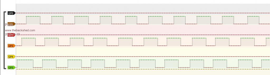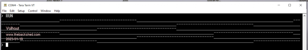 Matherp: Matherp's program above: Sub ReadyInt PIO stop 1,0 Memory unpack packed%(),data%(),2*length%,32 For j=0 To 5 mask%=2^j For i=0 To 2*length%-1 Print a$(((data%(i) And mask%)=mask%)); Next i Next j PIO init machine 1,0,f,p,e,s,0 'start address = 0 'PIO DMA_IN OFF End Sub PIO frequency can then be adjusted "on line" via GUI while the program is running. A possible route for adjustment of sampling speed for Zoom-in and Zoom-out? |