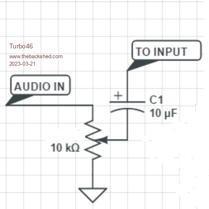 Can I summarise a few points here. - A battery in not a noisy supply source but any logic IC is a noisy load, particularly a microprocessor. Think of all of those internal switch circuits switching on and off at a million miles and hour. Especially switching circuits that have an active pullup and pulldown output, these have the potential to have both the high and low sides to be at least partially 'on' during the switching process. This will cause a spike of current to be drawn from the power supply creating noise on the power supply. Batteries have an internal effective serial resistance (ESR) which means that an increase in current will cause a drop in the output voltage. A microprocessor with thousands of little switching circuits in it will cause a lot of noise on the power supply (like a hiss). An electrolytic across the supply will help flatten out the noise on the power supply but they also have ESR so a 0.1uF will help remove the higher frequencies. Every IC should have a 0.1uF capacitor across the supply as close as possible to it's power supply pins. The display is a potential source of noise also and should at least have a 0.1uF across it's supply. The amplifier is another source of noise and is also affected by it. It should also have an electrolytic and a .01uF across it's supply. - There IS audio at the output of the filter - see the attached diagram: ![]() The output is the blue jagged line. The more aggressive the filter is the lower level of 'jaggedness' there will be in the output. This is why I asked Volhout for a two stage filter cutting of a around 5kHz. Notice that there is a DC offset in the audio signal. - The volume control pot for an amplifier must never pass DC. This causes a scratchy noise particularly when it is turned. See the attached circuit: ![]() The capacitor needs to be reasonably large because it needs to pass the audio signal frequencies recovered from the PWM. - If the remnants of the PWM signal pass through the amplifier, they should not be reproduced by the speaker. Even if they were, you would not hear them unless you are a bat. Bill Edited 2023-03-21 10:21 by Turbo46 Keep safe. Live long and prosper. |