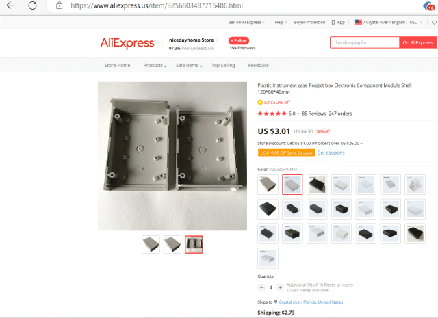 Here's a box, 120mm x 80mm x 40mm, which comes with removable end panels. PCBs of the size of those panels with the cutouts for the desired connectors could be produced. ![]() The boxes only cost $3.70 U.S. each with shipping if 4 are bought (I don't know if or at what point shipping costs would begin to rise). You could get both end panels off of a single JLCPCB design, so the end panels for 5 boxes would be about $6.40USD with shipping, giving a total cost of about $5 per box. The top would still need a cutout for an LCD--ILI9341 or ILI9488. With care that could be made with a jig and a side-cutting bit on a drill press. Long pin female headers could stand the LCD off the PCB through the top. 15-pin long pin female header PicoMite, Armmite F4, SensorKits, MMBasic Hardware, Games, etc. on FOTS |