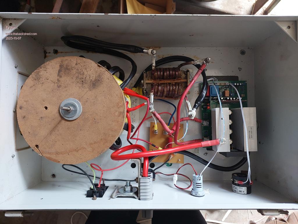 G'Day Guy's, Well at smoko this morning moved a bit of stuff so I could get some pic's ![]() Now the core measure approx 250 high x 300 long and it's 100mm thick and it has the wires on each outer leg of the core. The core is all welded together and it won't take much to grind out the weld to get the windings out. ![]() This is the donor Mig welder and plenty of good bits on it too like those 2 huge gauges a 50 volt one and a 300 amp one. Mike yes that toriod I got from you did have the turns written on and to keep all that plastic tape from fraying I wrapped some of my yellow tape to fully cover the toriod. So any hope of taking windings out is gone as it's all sealed up and trying to take the tape will be a nightmare I'm sure. Cheers Bryan |