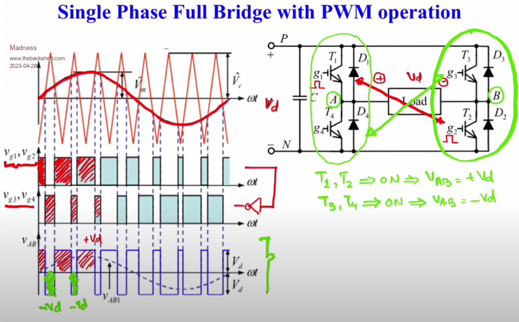 It's actually unipolar modulation. Different PWM modulation can certainly affect the inverter behavior but it can't stop backeed charging from AC coupled GTI's. GTI's are current sources that will push the island grid voltage as high as it needs to pump as much power as possible (limited by PV/sunlight). So, the backfeed current will charge the batteries through the body diodes in the inverter MOSFET's when the voltage gets high enough even if the MOSFET's are turned off. I took a quick look at the nanoverter code (2xsine) and it appears to have a pretty slow control loop with pretty high PID gain. It appears to assume fairly stable and linear loads which is not really valid for AC coupled systems. In AC coupled systems, island grid voltage can jump 10's volts mid cycle (e.g. large load turn off's) and some GTI's can continuously inject periodic and non-linear power disturbances due to anti-islanding mechanisms. Your GTI problems could be due to transient voltage instability caused by the interaction between the voltage rise driven by the GTI's and the inverter control loop response. Since you are off grid, if your GTI's are IEEE1547/UL1741 compliant and has configurable grid settings then I suggest you disable anti-islanding and set the range for voltage and frequency to as wide as possible, and set the trip time for out of range voltage and frequency to the max allowed (default is typically 160ms). You may also need to tune the PID gain parameters. Edited 2023-04-29 03:00 by analog8484 |