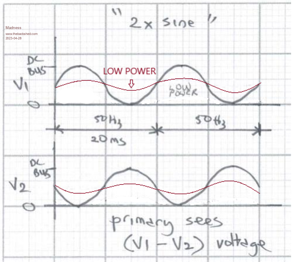 There is something wrong, I have taken a break from it today to do other things I need to get done. It could be the power board, could be the choke(s), could be the new 3-core torroid, I will get it worked out over the weekend. Just need to swap components till I isolate where the fault is, if I did not use GTI's I would not know it is faulty. Although something is wrong and one day it would have caused something to go wrong. While it was running overnight the heatsink was running warmer than I would expect but I thought that may have been due to the 2XSine and additional switching losses that Poida mentioned. With 300 - 500 watts overnight the heatsink was 32 degrees and the torroid 29 with an ambient temperature of less than 20 overnight. This makes me think that something on the powerboard is probably the culprit. Yes, the 2XSine worked so well on the small test inverter, this is a big positive for me, otherwise, I might have given up on it. In fact, when I put the EG8010 controller in the big inverter to get it going with it I may have left it there, but it was a step I should have taken earlier to know that the new inverter was good. The GTIs would connect but disconnect when their power output rose above a few hundred watts or if something like our house water pump started. Now the house is being powered by the EG8010 which has been powering the house for the last 7 years. The GTI's connect to it happily and run all day without a single disconnect or complaint of any kind. I have another smaller EG8010 inverter with a single-core torroid that has been wired in as a backup. It works happily with the GTIs as well, when I get this new inverter working the one that has been powering the house for so long will become my backup if something goes wrong. I have a manual transfer switch wired in so I (or anyone else in the family) can change between inverters in a few seconds. There are only 10 types of people in the world: those who understand binary, and those who don't. |