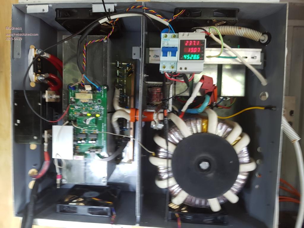 The OGI is my modified version of the Ozinverter which includes the 24 fet power board that I designed and is mentioned many times on this site. It has a toroid that I rewound from 2 3KW Aerosharp GTI toroids, battery is a 48V 37.5KWH FLA forklift battery. I have seen 120A current to the battery from the OGI, it is now regulated to 80A maximum. The back feeding ratio has never been an issue, I can be using 500W while 80 plus amps are going to the battery and it is 100% stable. There have never been any disconnections etc except with this new inverter which has now been found to be faulty. This is the OGI I have been using for the last 7 years. The photo was taken Wednesday, 23 November 2016 so not quite 7 years. ![]() This is the new OGI that I am working on. Same power board, 3 core torroid and Nanoverter control card. ![]() Edited 2023-04-29 07:05 by Madness There are only 10 types of people in the world: those who understand binary, and those who don't. |