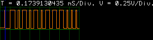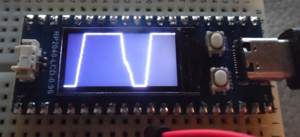 'do 'mysync 'adc start samples!() 'get new samples ' 'loop until samples!(2)>samples!(1) 'this is the point... carp. adc start samples!() 'get new samples For this to synchronize properly it needs to restart filling the array before the first ADC START has finished. I am not sure that is possible. In my example a random lump of samples (at least double the screen width) is captured then scanned for the trigger condition. From that point on the data is written to the display, up to MM.HRes. It should work with your display. See first line ' PicoMite VGA / LCD (any screen size) "scope test 1g.bas" Edit This is what I get on an ILI9488 with the graphics area limited to 160 x 80. (the displayed trace is from a DHT11 sensor). ![]() For best results on your display adjust settings in the first section and remove the TEXT command and section referring to FONTHEIGHT and WIDTH. If x < MM.Info(FONTWIDTH) * 30 Then becomes Line x, MM.Info(FONTHEIGHT), x, VRes, 1, 0 'delete old trace Else Line x, 0, x, VRes, 1, 0 'delete old trace EndIf Line x, 0, x, VRes, 1, 0 'delete old trace Also change the voltage graticule spacings. > option list PicoMite MMBasic Version 5.07.07 OPTION SYSTEM SPI GP18,GP19,GP16 OPTION SYSTEM I2C GP8,GP9 OPTION CPUSPEED (KHz) 376000 OPTION DISPLAY 55, 132 OPTION LCDPANEL ILI9488, LANDSCAPE,GP15,GP14,GP13,GP7 OPTION TOUCH GP12,GP11 GUI CALIBRATE 0, 3820, 408, -1306, 946 OPTION SDCARD GP22 > Edited 2023-07-27 15:34 by phil99 |