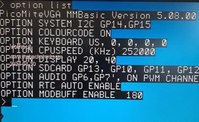 I simply have a text file, which has all of my option settings for every Picomite version that I have, in sections, with a comment saying which Pico it is for, I then just copy & paste each line back to the pico. Recently I've been keeping xyz.opt files on my SD card, but obviously you still need to know the options to enable the SD card! I also keep an option file for a VGA 378MHz, as it appears I'm lucky there.