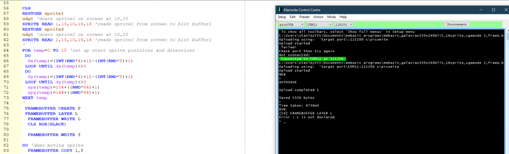 Forum Index : Microcontroller and PC projects : PicoMite V5.09.00 betas: Sorting out SPRITE and BLIT + USB variants
