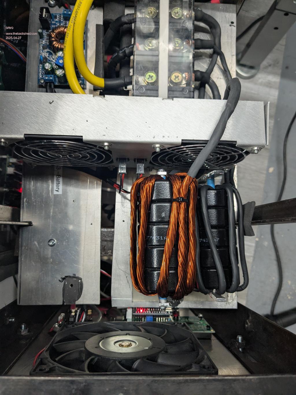 Thanks man.  Well for the transformer I basically connected the original primary and secondary in parallel and called that my HV winding, and then added a new LV winding.  So that kind of makes the transformer into a 3KVA transformer. (other 3KVA transformers are very similar in weight to my rewound transformer)  IMO cooling makes a big difference, and I am passing air through the center of the core, and forcing it closely to the walls of the transformer.  Plus the fans I am using move a lot of air and the LV winding has very thin insulation on it which should result in better heat transfer.  Further testing is probably in order though.