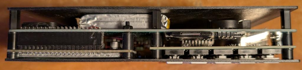 The prototype is now complete. The top and bottom panels have been laser cut out of plastic sheet but I think PCB versions would be better. The final version will be 1.4mm bigger all round to space the screws away from the edge and stop the spacers overlapping. In addition, the keyboard PCB will be extended to be the same width as the screen so that the screws mounting it will line up on the top. The version shown is 33mm deep. This has the keyboard and PGA2350 soldered direct to the motherboard. With them both socketed the depth increases by 3mm. Ergonomically it works well held in the hands with all keys accessible to the British standard thumb. Alternatively, it could sit on a table with rubber feet and be easy to use. I will work on a full manual in the next couple of weeks and publish all the design information needed to build one. Total cost to build including everything will be of the order of USD100 of which USD35 is the 5" SSD1963 IPS screen which IMHO is what makes the device properly usable. Of course the unit is fully supported by standard MMbasic V6.01.00 and is configured with the command OPTION RESET PALM PICO. The unit should be able to run the complete suite of Game*Mite software with minimal changes (keyboard input rather than direct switches) although by running the screen in 8-bit mode GP8-GP15 are freed up for an external gamepad and there is a port for connecting controllers such as the Wii Nunchuck or Wii Classic - perhaps I should make a WII edge connector on the side of the motherboard? As above the battery is a 10000mAh flat pouch cell and should provide 20 hours of use. The red LED is the caps lock indicator. There is a heartbeat LED on the motherboard that can be seen between the various layers to confirm MMbasic is running ![]() ![]() ![]() ![]() Edited 2025-10-10 04:49 by matherp |