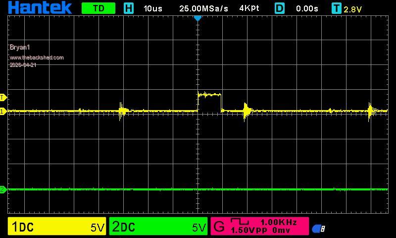 Ok made up the 5 volt board using BC337 trannys as I have plenty of them here and getting closer ![]() Phill I didn't use enable as it is an option and the DM556 can work without using it Edit: just ran the code with Channel 1 just connected to GP26 which is the step pin and it was a tad cleaner trace but the same as the picture above ![]() Edited 2026-04-21 11:44 by Bryan1 |