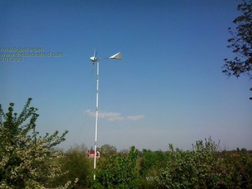 It is now our rainy season so setting it up by the mast under the turbine is not going to be easy for a while. I will also post pictures of the voltage doubler I built up and is currently running, and as I reported here before, if I flick the switch in low winds, the charging goes from zero amps to 1 amp at 48V, and keeps this one amp advantage and increases slightly till the main turbine voltage is high enough to take over. Surely 50W for nothing. OK, the cost of a few parts.