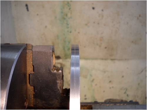 This is a shot of the bare plate chucked up in the lathe as we begin to