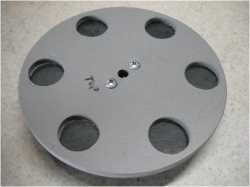 Here's all 6 holes cut in one plate with one 1" neo-magnet inserted