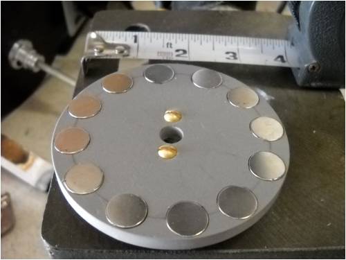 Next, I loaded each of 12 individual rare-earth magnets into the holes,