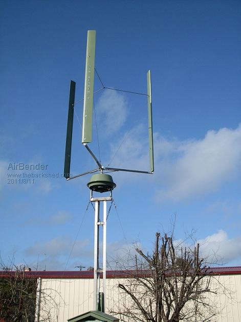 I can see where Mac is coming from regarding drag. Although you have struts and wires to stop the blade bending out wards, there is nothing to stop the blades bending back from drag, that is the force pushing at the blades leading edge. At speed the tops of the blades will be twisted back, with respect to the turbine axis. But hang on, just rethinking how a lift type VAWT works, the twist is actually going to be forward! Looking at your last picture, the blade closest to the camera. The top of the blade will be driven to the left, because its lift is driving the blade to the left, and the bottom is anchored to the axis, but the top isn't, so its going to want to lean over in that direction. A fix would be an extra wire from the top mount point on that blade to the bottom mount point on the next blade, to the right in that photo. That way each blade is triangulated and cant get out of shape. Glenn The best time to plant a tree was twenty years ago, the second best time is right now. JAQ |