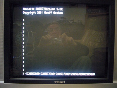 Hi, I have loaded the V2.6E software from Geoff and tried it to a 20 inch Teac color TV. Immediate sync up and I can easily view 50 characters by 18 lines of text. I did not adjust the TV. Unfortunately there is a slight jitter of the characters compared to the PAL signal to the same TV. I am not surprised to see 18 lines, and think that Ken’s monitor may be over-scanned. On my TV the NTSC display used more vertical screen space than PAL but there was an adequate margin. I could view the video waveforms readily with my oscilloscope and observed the correct timing within the limits of the instrument. It is not young (nor am I) but a dual trace 65 MHz with delayed sweep and a TV sync and calibrated. I looked carefully at the expanded sync of the NTSC signal, searching for a reason for the jitter but found nothing incorrect (yet). My composite video waveform was nearly 700 millivolts when terminated in 75 ohm. This should be about 1 volt. My Dontronics SM1 has the clamping diode U3 fitted (.7V clamp) but I do not wish to remove my surface mount diode. Perhaps 40% more sync level may remove the jitter, could someone try this. When testing composite video remove any VGA monitor. I am still thinking about the jitter. Perhaps a small number tweak could help? I have photographs of waveforms but include only the Teac NTSC display here to show 18 lines by 50, I think myself also. Not yet the final answer, also that Ken should have a problem with a compiler is a worry, but not a unique experience. How to switch between composite video modes? Having selected by the jumper that composite video is required, and at power-up no video viewable (wrong mode). By pressing a particular key or keys a ram flag is set and the Maximite restarts, finds the flag set (with a checksum) and boots to the alternate composite mode. Now with video available an Autorun.bas file can be created. The Autorun file might contain only the word NTSC. With some eeprom or a RTC ram the autorun file is redundant, though (if required) the same method used to select the alternate composite video mode initially. I wish a battery backed RTC including ram to be standard? Keith W.