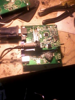here is a pic of my blown up SM! board with the "rtc" components running ..isolated from the faulty cct of the "SM1" with my "EV " board mounted on top of it and hard wired vga video and a k-b sckt that i removed and cable tied up to the usb conn....the time clock is running and so there you have it a fully working maxi it has all the features working...///...///
