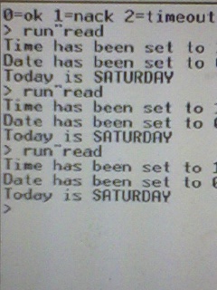 well this is the rtc files it seems to work although its midnight and i am not shure weather the clock is set to 12 or 24 hour mode but it does work...///.../// 2011-11-04_230826_rtc.zip i just set the time to 12:16:00....so if it turns over at lunchtime it will be presting 12 hour mode.... well have to wait till then...///.../// also it reads the day correctly its saturday now...thats what i enterd since ...///.../// also would like to add i did this with the battery fitted just st the correct time and date from the command line next run"setime ...follow the prompts " then hit enter.... then run the "read" program and every thing should display in front of you ...///.../// technicians do it with least resistance |