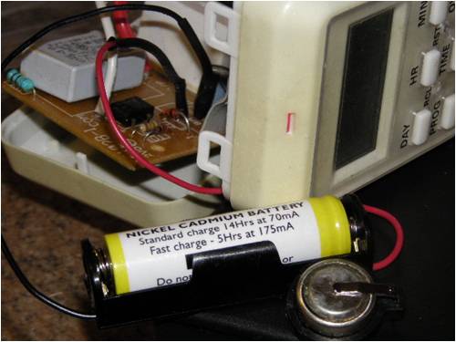 In the pic you can see the old coin cell I took out. I had that charging overnight but woke to no LCD display so thats over with. AA is Nicad which was the original type in the timer. The replacement coin battery shown was obtained from Battery World. The NiMh and was nowhere near as good as the original, they charged me something like $8 many years back, and were the only people I could find to supply a replacement. See how this runs in meantime for timer recovery.
