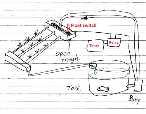 However, I don't know how high the trough would have to be above the vegies to provide enough head.