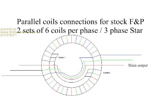 Hi, I completed F&P modification. It is now two 6 coil/phase 3 phase star connected in parallel. Replaced the spade connecters with screw terminals. Output to output resistance is about 10 ohms.