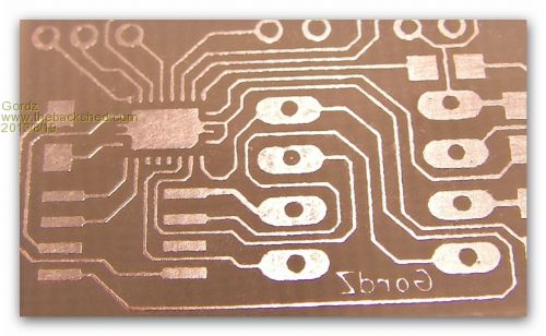 For a 'ragged" etch that looks pretty reasonable Gordon - those tracks look quite fine. The toner they use must be OK for our use too or you wouldn't have gotten that far with it. 1200 resolution isn't shabby either so I reckon it's a goer. Pity about the extra $18 but it's still really cheap - think I'll head out now and get one. Thanks for getting it and doing the test for us all. Greg |