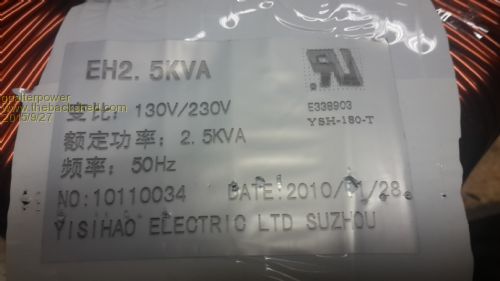 Hi Glenn The hole diameter is 80 -85 mm. Since my setup is 24v, would I need to use 25mm area cable as your system is 48v? Or do I need to go bigger? I hooked up a 60w globe and these are my findings. With the lamp hooked in series it didn't come on at at all. .. not even a glow! Some weird like scratching sounds within the toroid when connected and disconnected . Lamp in series in other winding ( inner). Lamp was half as bright.( 132v across lamp)....but this is the weird thing, with the lamp in series on the outer layer and dosent no glow, I connect the inner windings together it comes on bright..confused! Is this a charactist of toroidals or a problem inside? Windings are not shorted as there are separate ohm readings . I too believe it could be an earlier or maybe different model as yahoo suggests. Took a pic of the old label as for some comparison if you still have yours. May have binned by now!