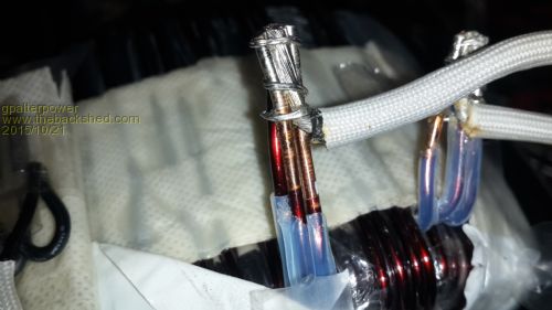 After removing more insulation I uncovered the start and finish of the original primary. It is 3 in hand of 2.25 mm dia wire which equates roughly to 12 sq mm.