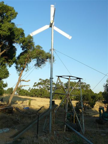 Hi Highlander, yes we have hooked up the inverter and it is working fine. My brother in law is up there at the moment, and yes I noticed that the trees affect the performance but he had the hole dug and filled in with concrete before I got there otherwise I would have suggesed a diffetent location. But that will have to wait until a later date. The inverter runs the fridge TV and the lights without any problems, were not sure about the fridge but when I checked the power consumption it was only abot 200 to 220 watts when the compressor was running. so he is very happy, but I do not know how long the batteries will last, so we are going to supplement the wind generator with a set of 200 watt 24 volt solar panels later on as they are much more expensive than the wind generator, which he got from A+ Imports in Wendouree (near Ballarat) he also has a 5 KVA diesel generator as a back up and the inverter is basically a UPS so that when the generator is running it will charge the batteries, and then when you turn of the genset the UPS takes over. but it takes about one second for the cahnge over to take effect and the UPS to come on line so it is not a no-break system.but that does not matter in this situation. still looking for a three or four sided tower 10 to 15 meters high. Thanks for your positve comments Hope you had a good and quiet New Year ericvr limited greenie |